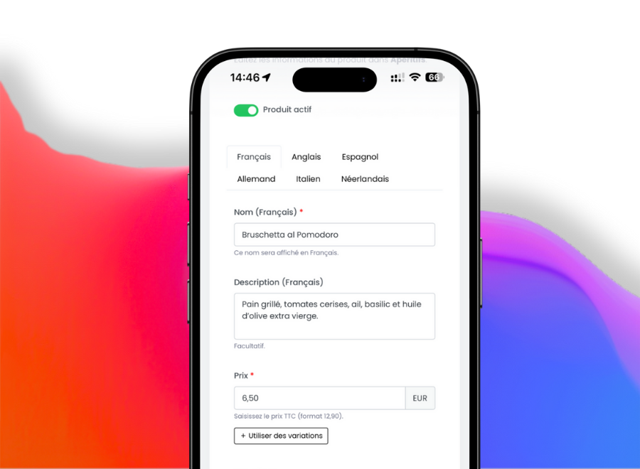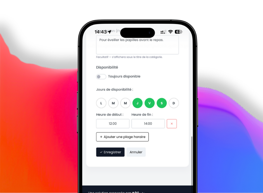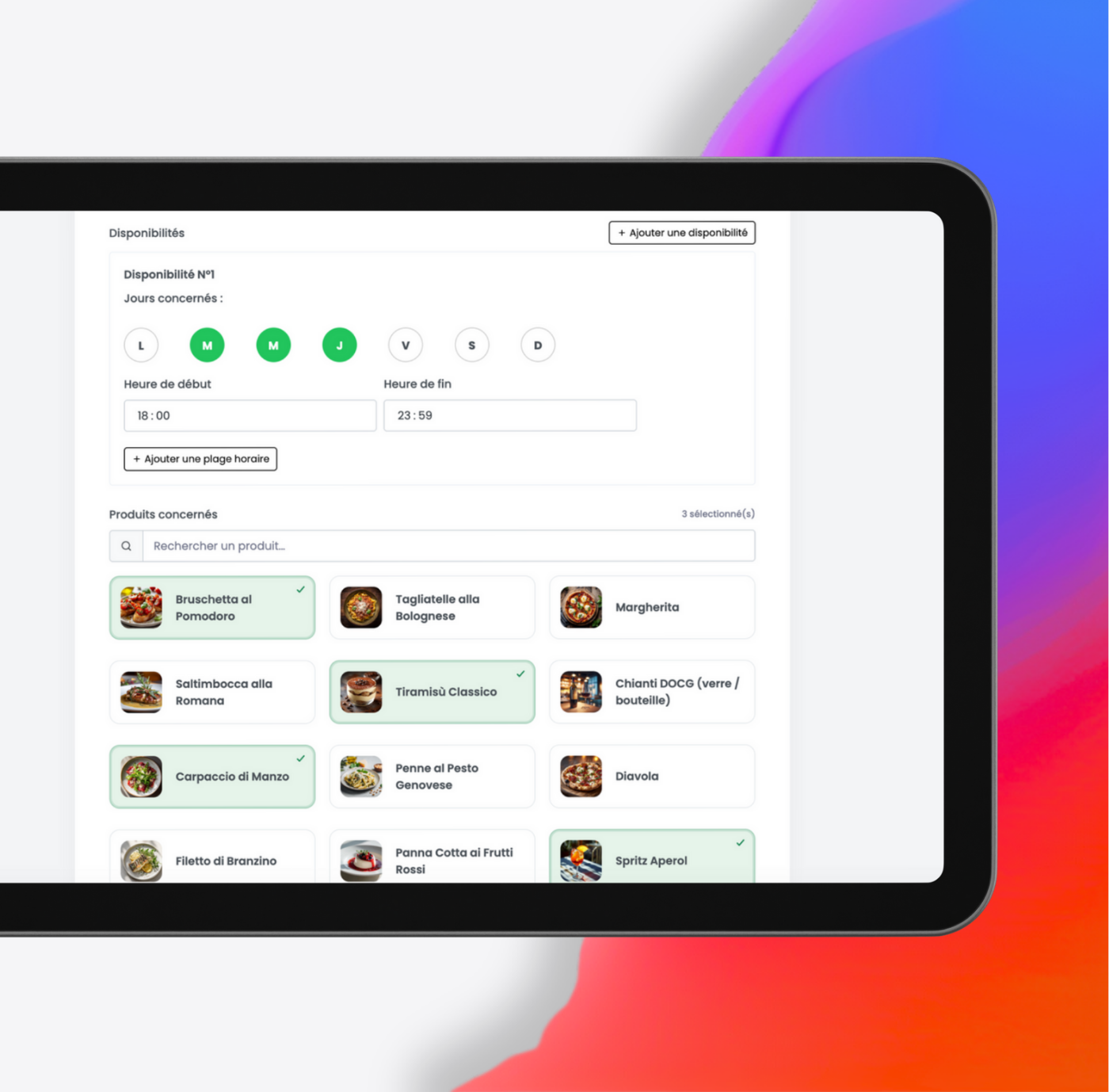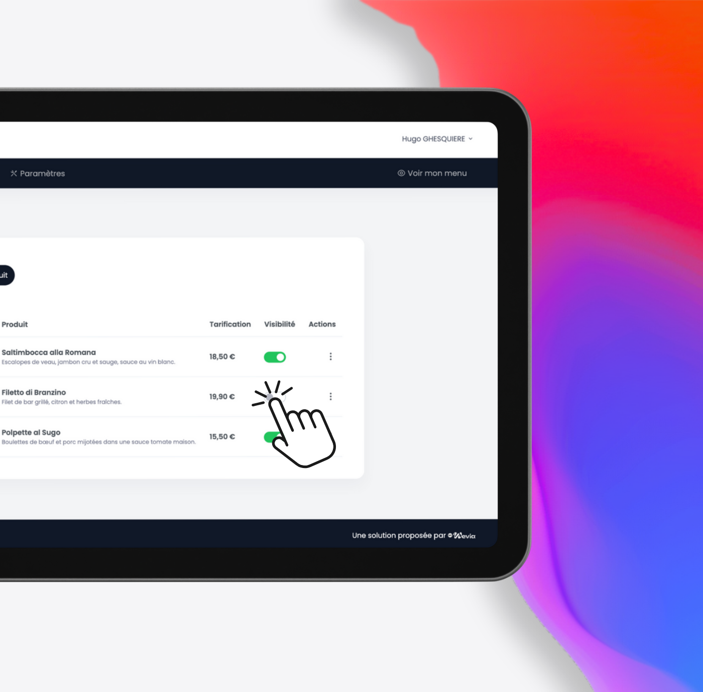 Vous modifiez vos plats, prix, formules du jour ou disponibilités directement depuis