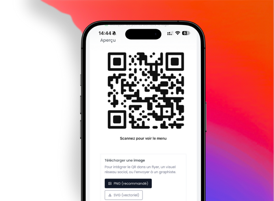 Votre menu est immédiatement accessible via un QR code unique à placer