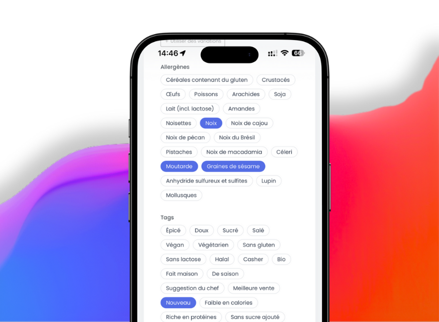 propres et, selon vos besoins, des visuels, allergènes ou mentions légales.