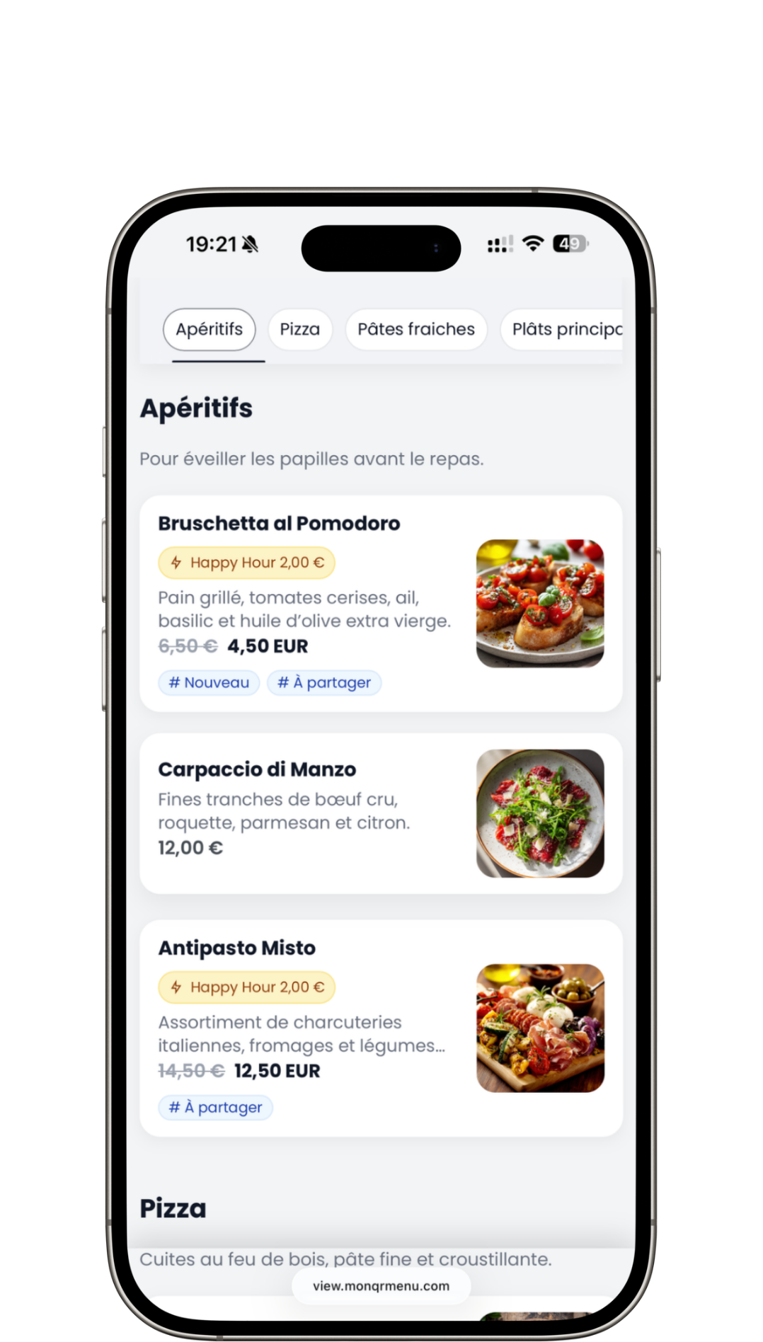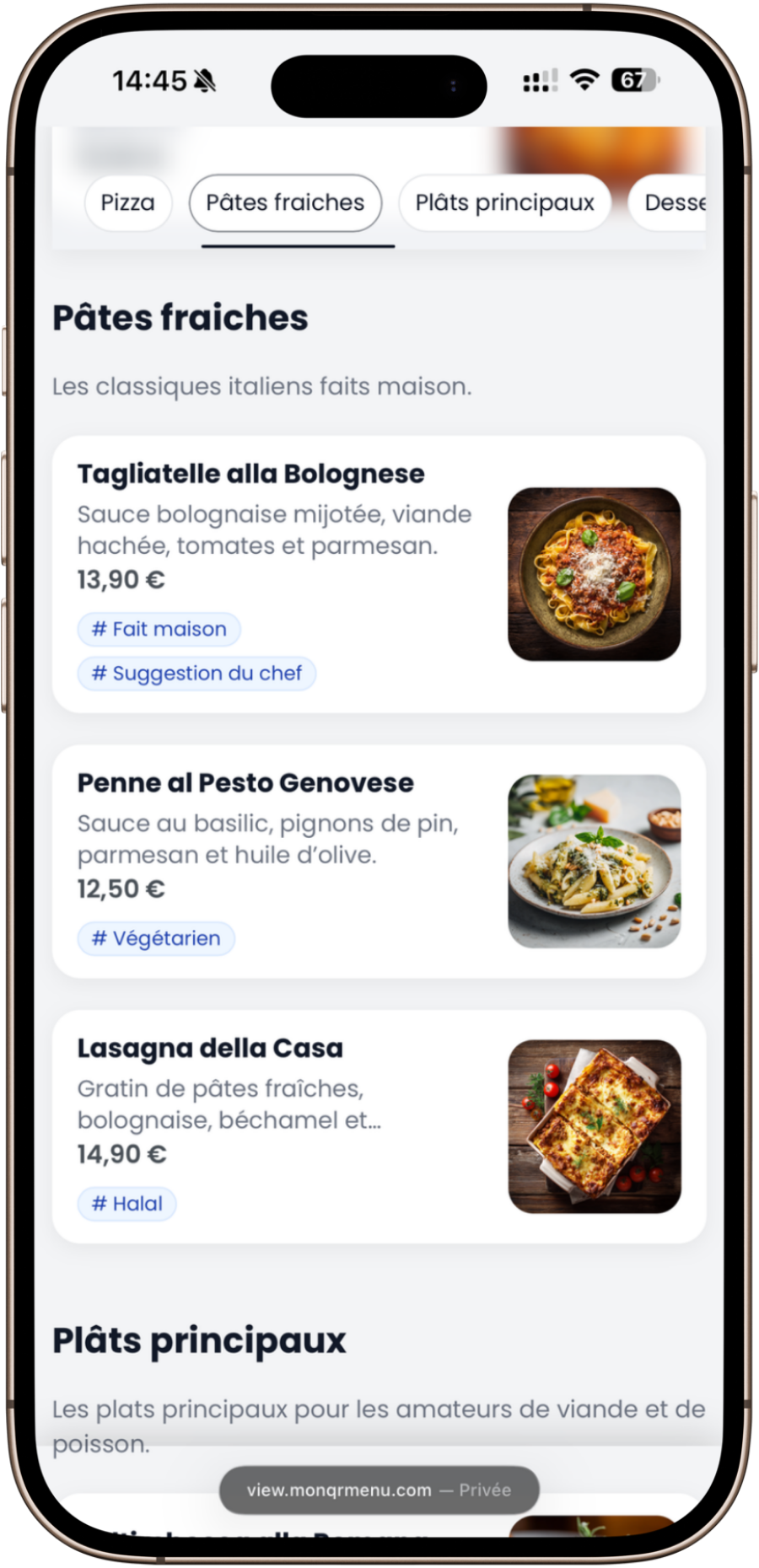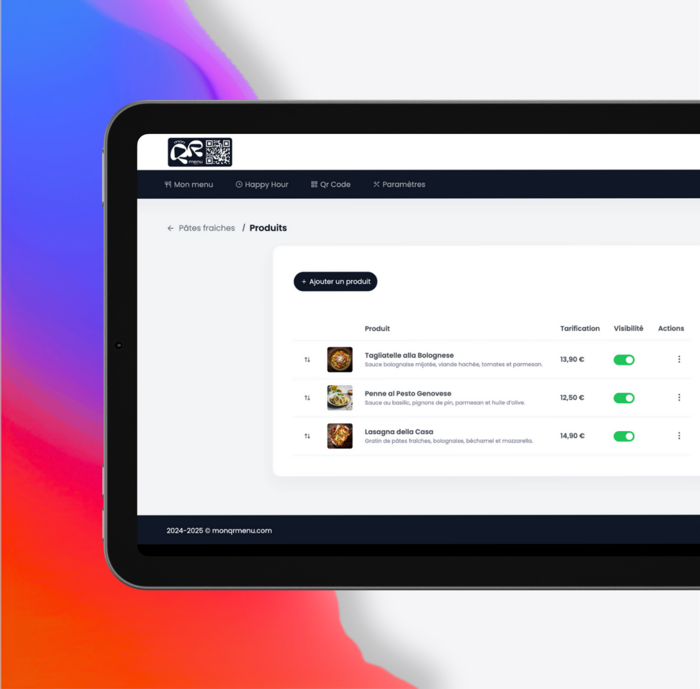 Simple, flexible, sans compétence technique, MonQrMenu vous permet de mettre en avant vos plats et