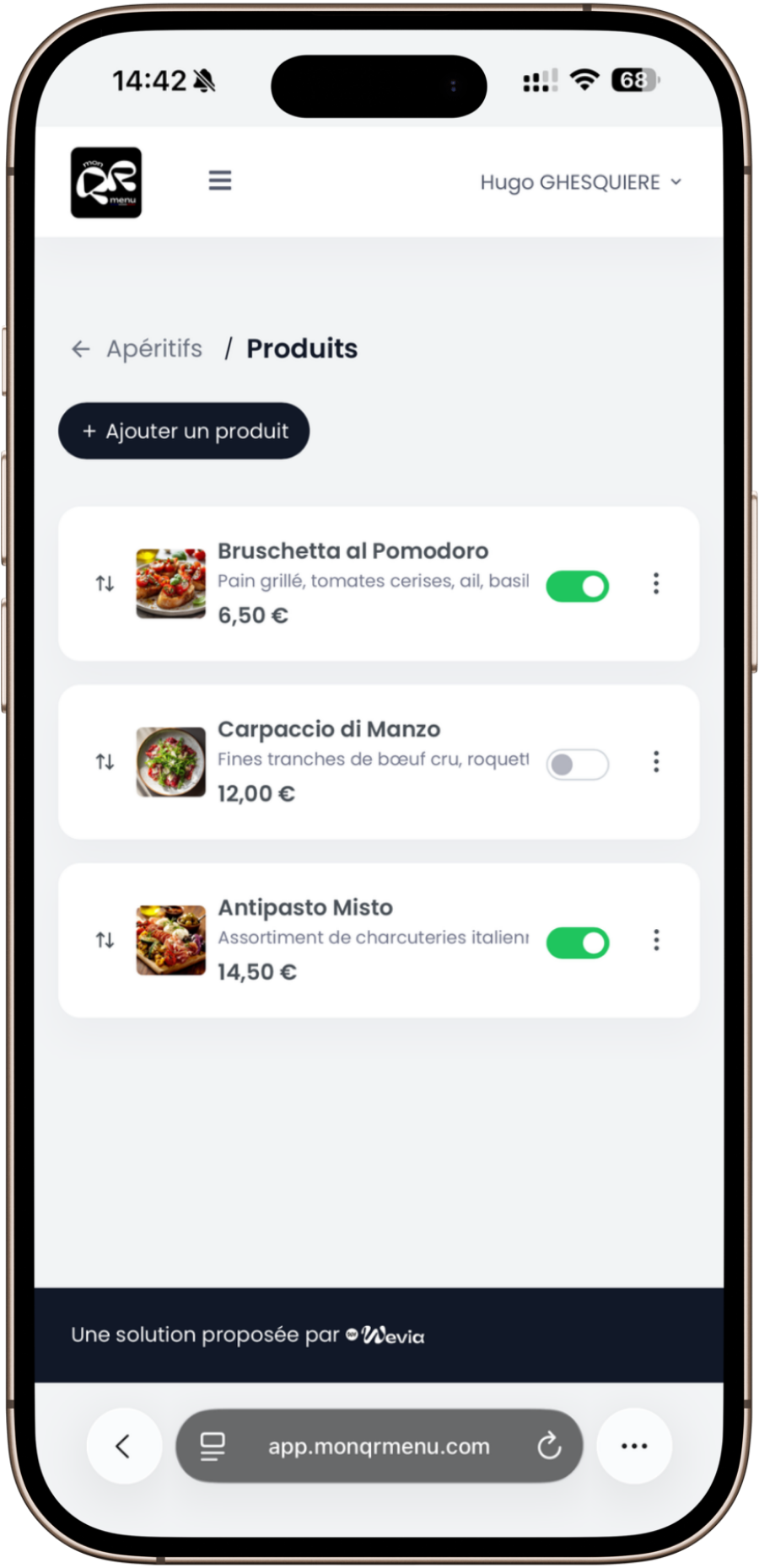 Avec MonQrMenu, votre menu QR code digital reste toujours à jour.